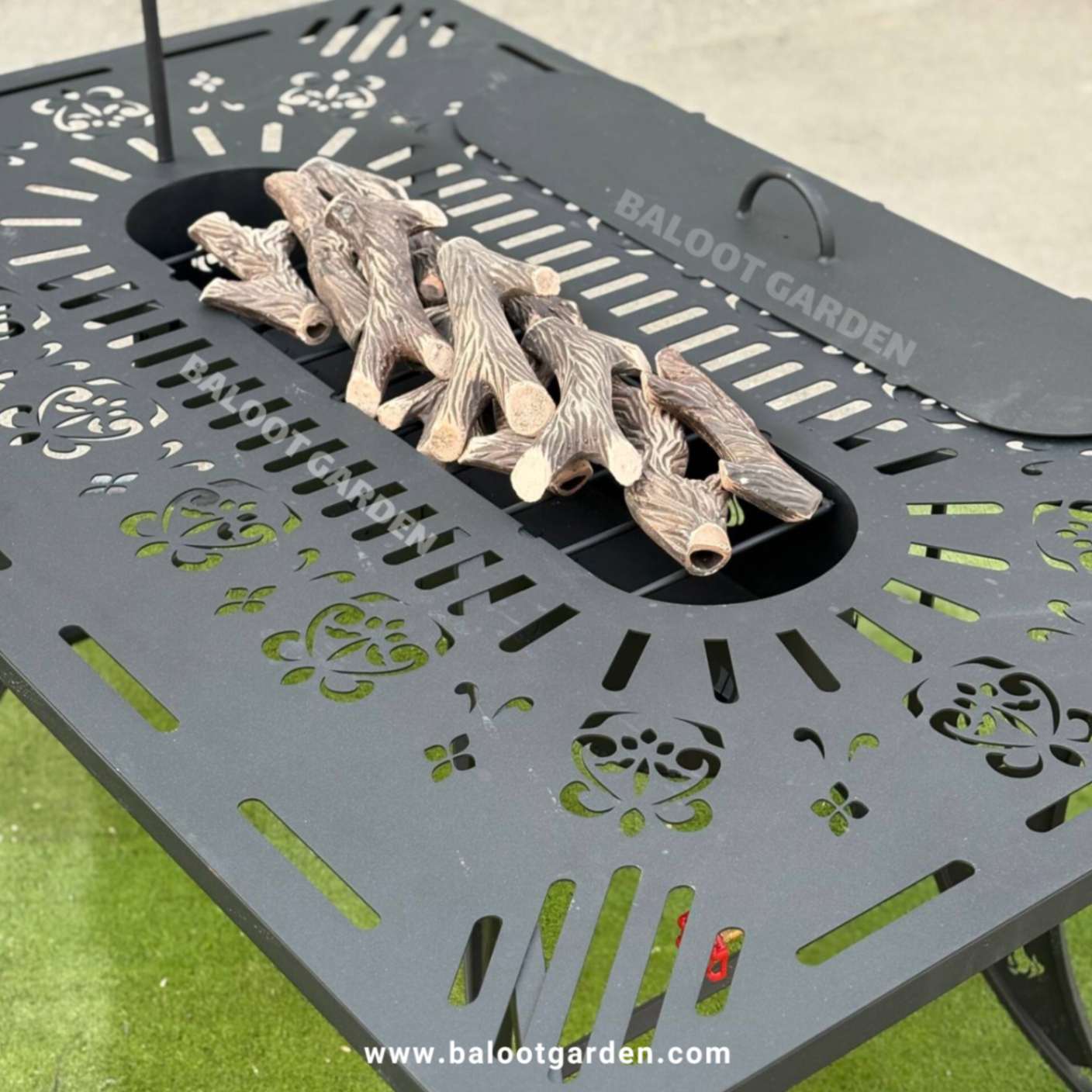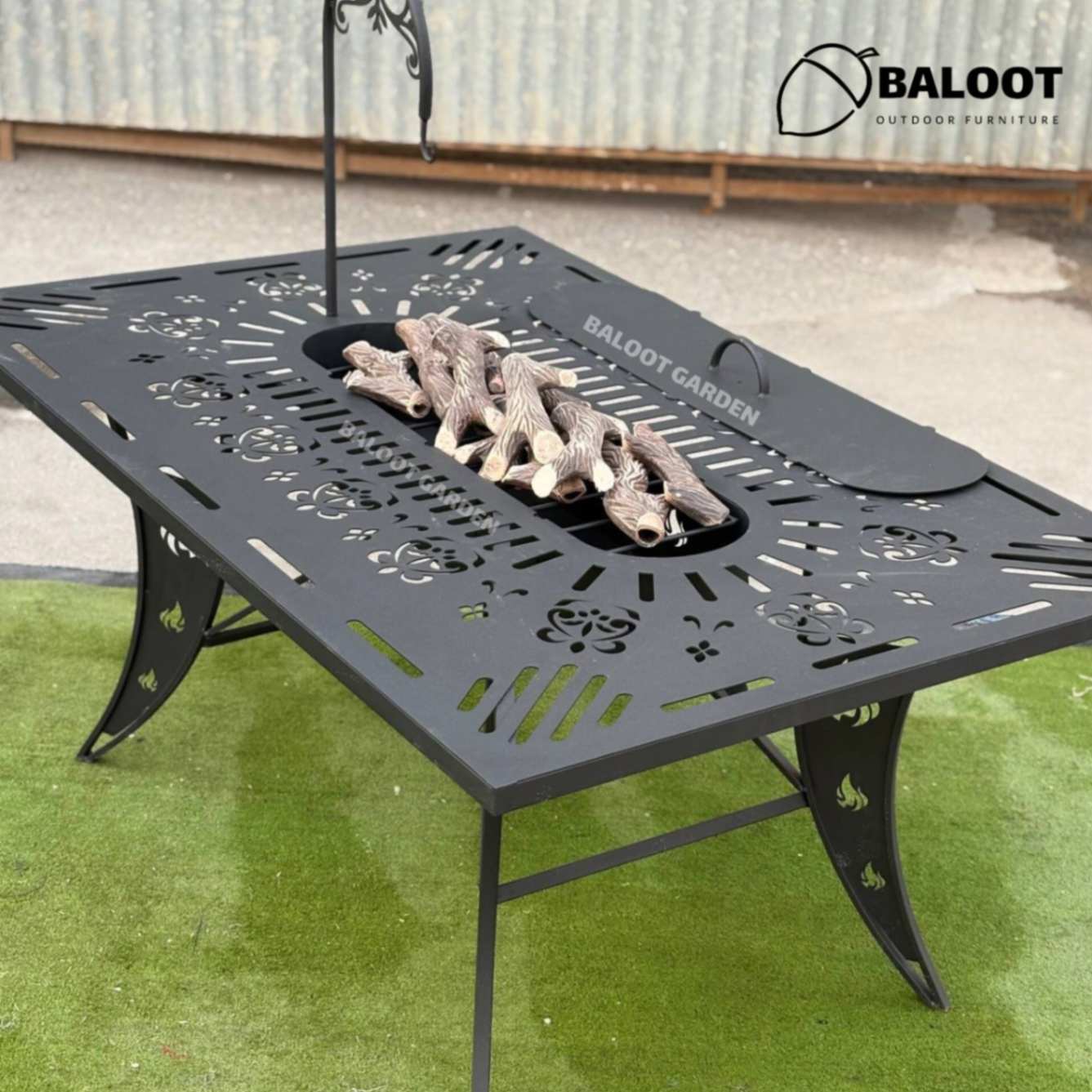 ابعاد ۱۵۰×۱۰۰ سانتیمتری آتشدان فضای کافی برای قرارگیری ۶ تا ۸ صندلی در اطراف آن فراهم میکند و طراحیاش به گونهای است که بهراحتی با هر دکور فضای باز هماهنگ میشود.