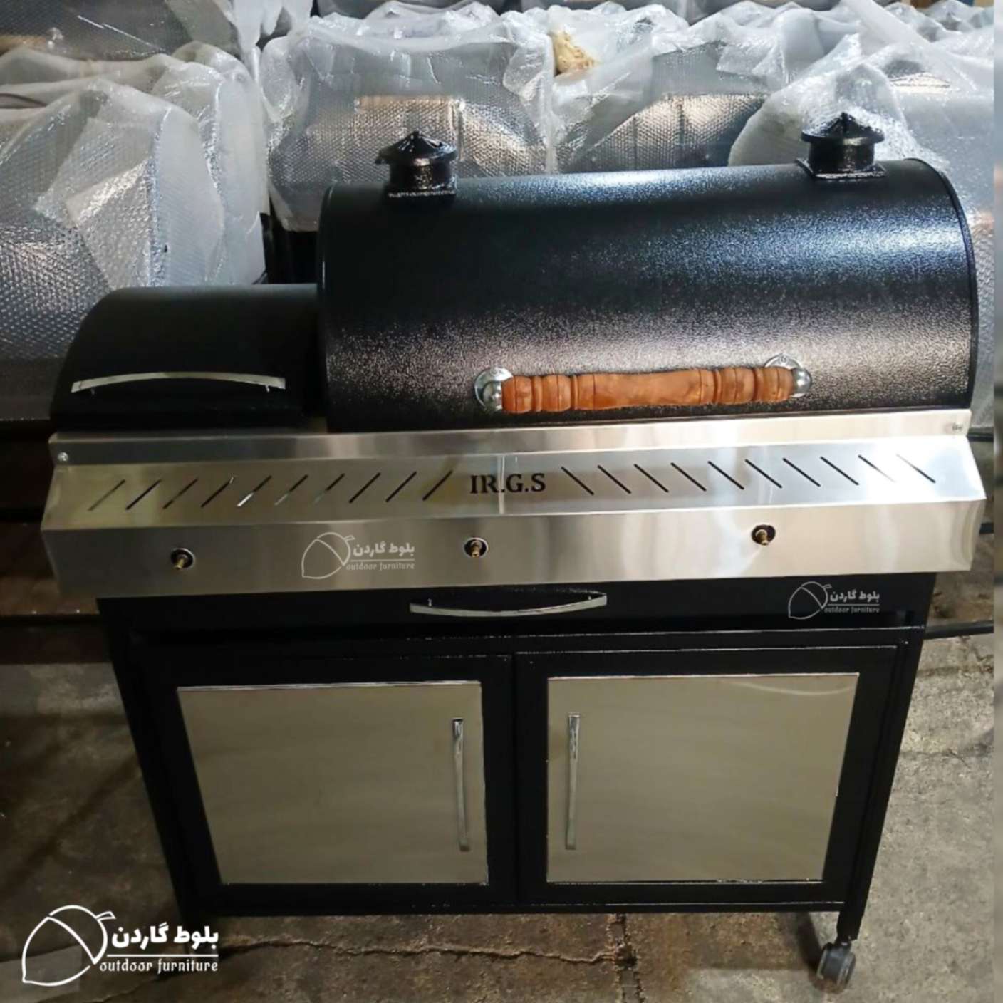 خرید باربیکیو عرض 90 کابینت دار+ اجاق کنار (نما استیل)