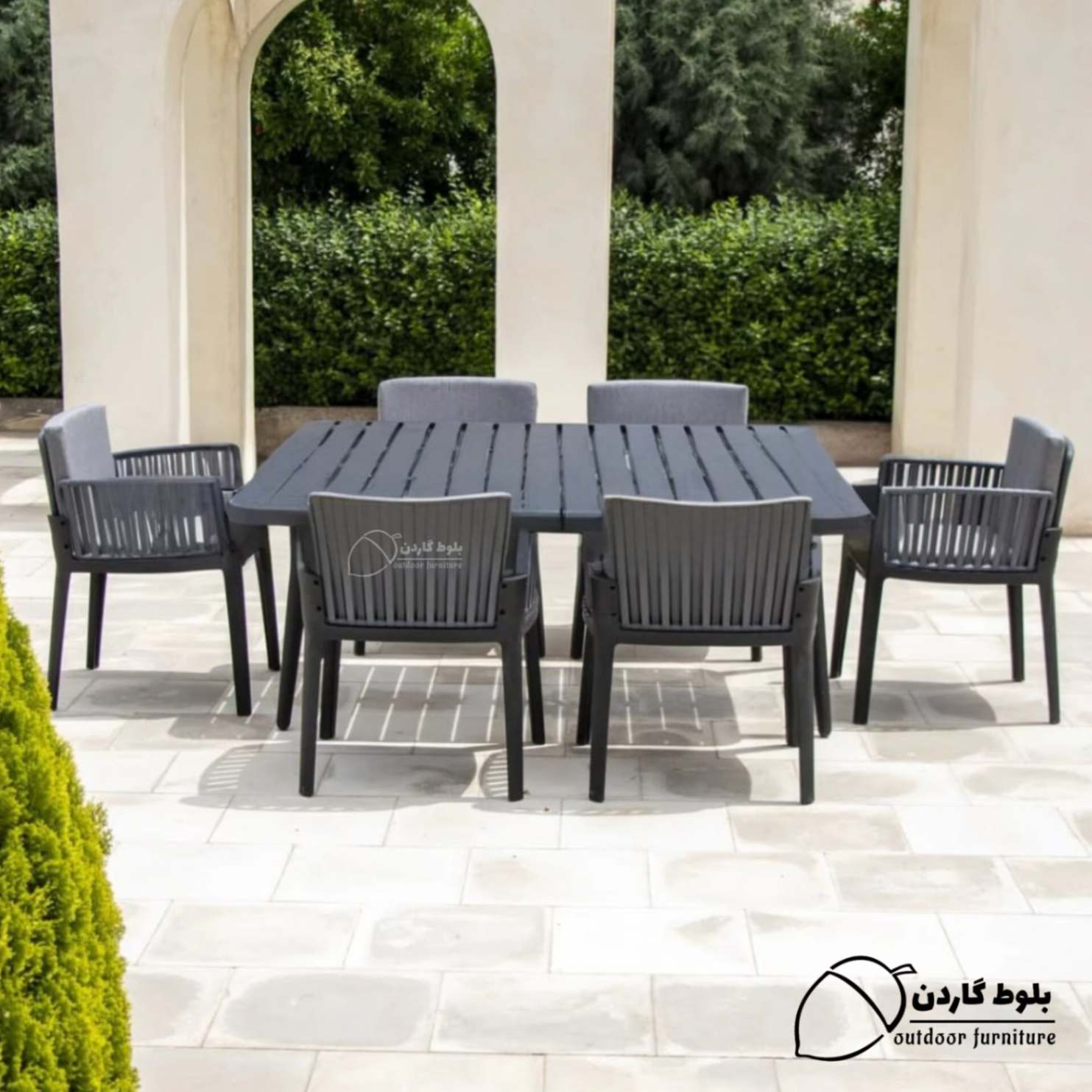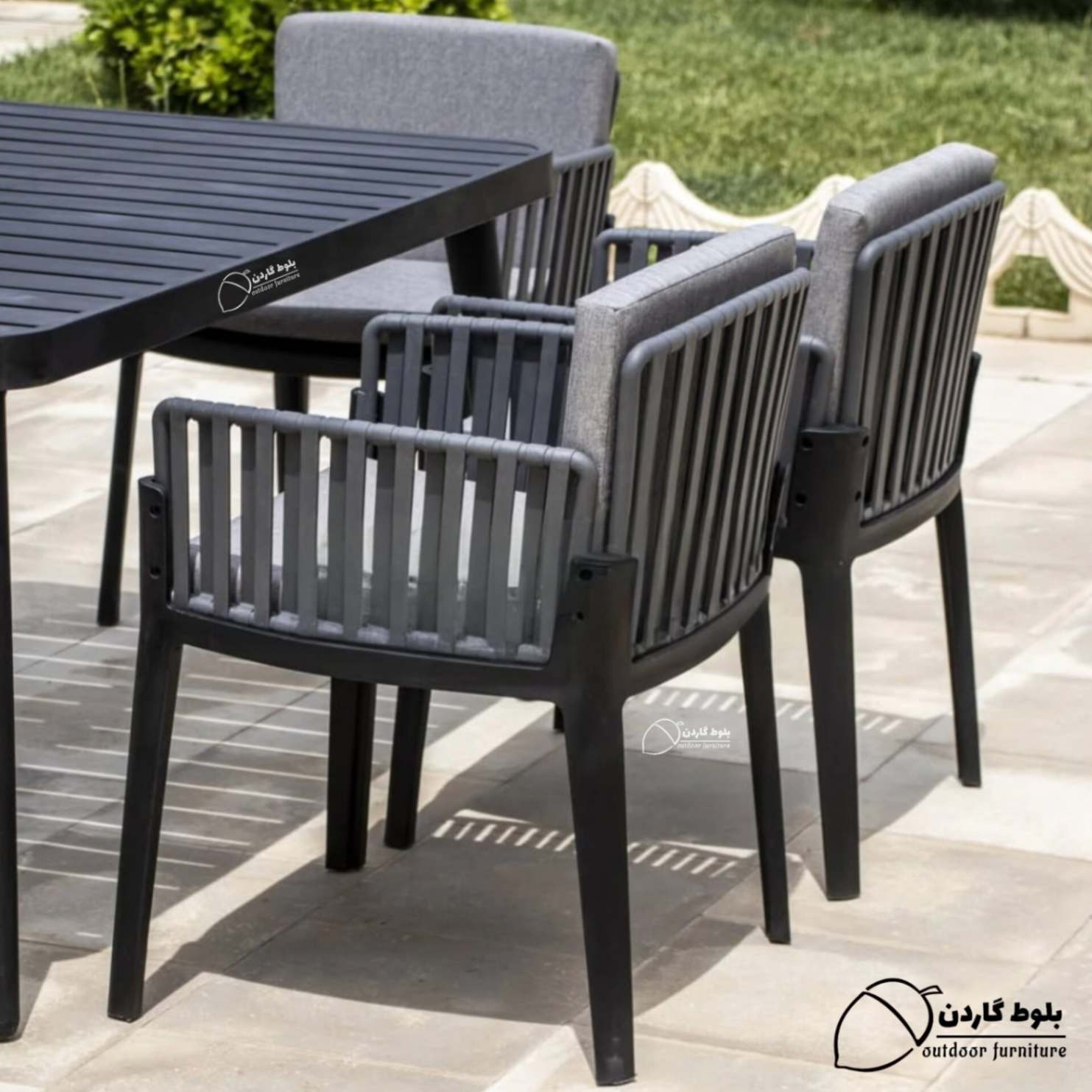 پایه های صندلی پلازا از پلیمر مهندسی شده و دسته پشتی از فلز آلومینیوم و روکش طرح چرم تشکیل شده اند PELLAZA همچنین پارچه تشک صندلی باغی پلازا پارچه مبلی نانو سهت که در برابر آب از نفوذ آن جلوگیری میکند و برای فضای باز عالیست.