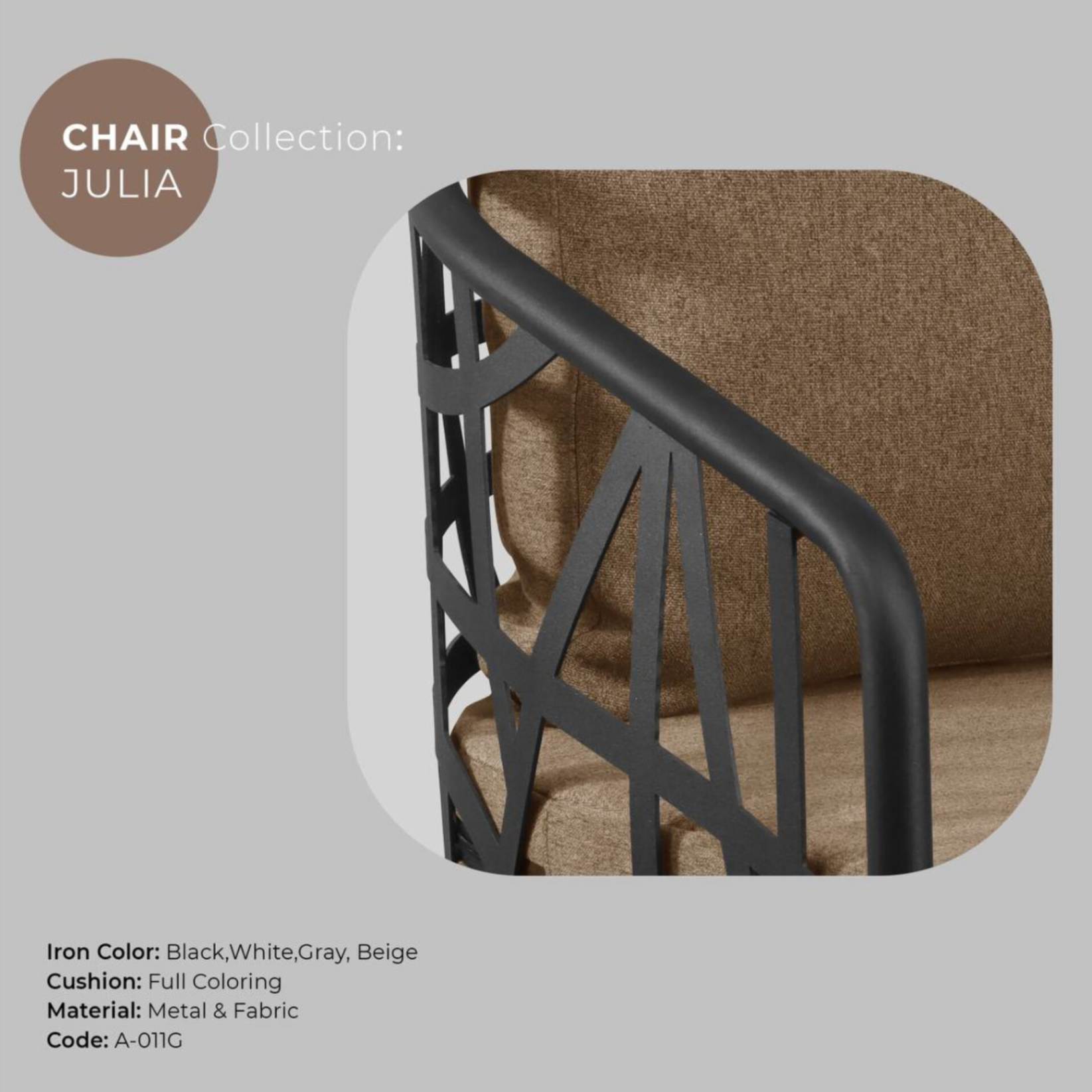 شما میتوانید این صندلی را در رنگبندی مختلف پارچه در جنس های ملما ، جولیا و کنزو به ما سفارش دهید
